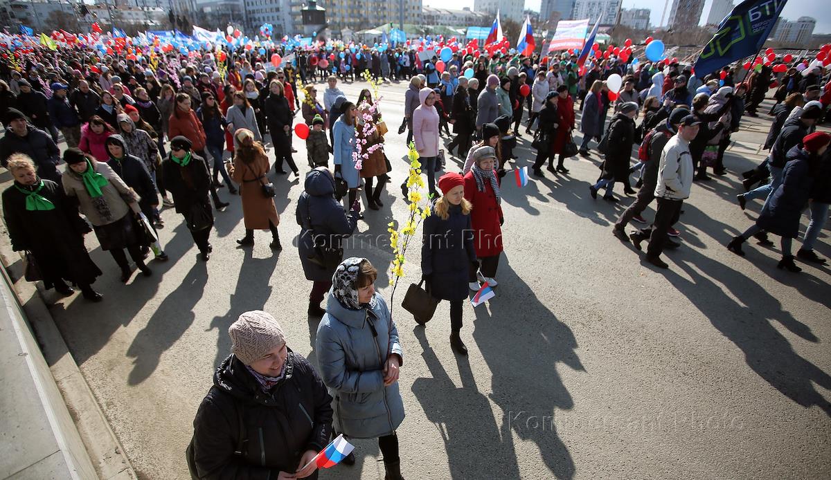 Участники первомайской демонстрации на улице Ленина.