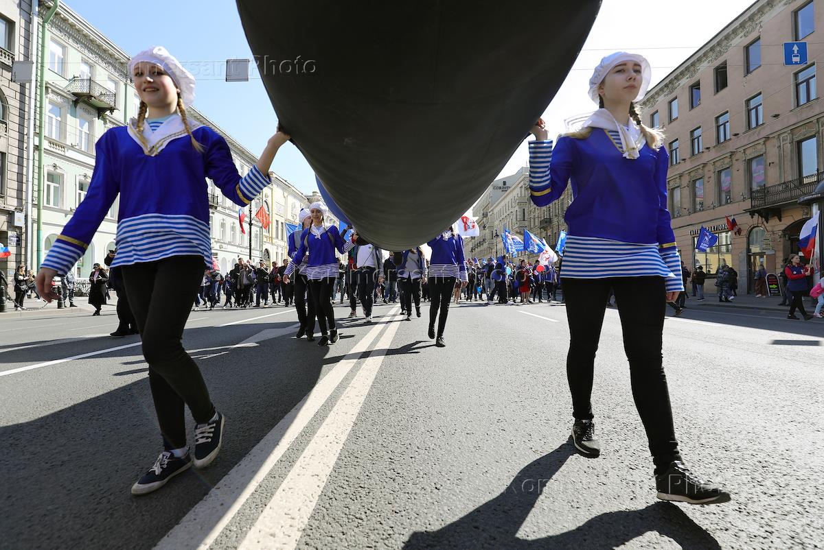 День Международной солидарности трудящихся. Первомайская демонстрация в Санкт-Петерурге.