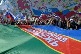 День международной солидарности трудящихся. Традиционное первомайское шествие профсоюзов на Красной площади.