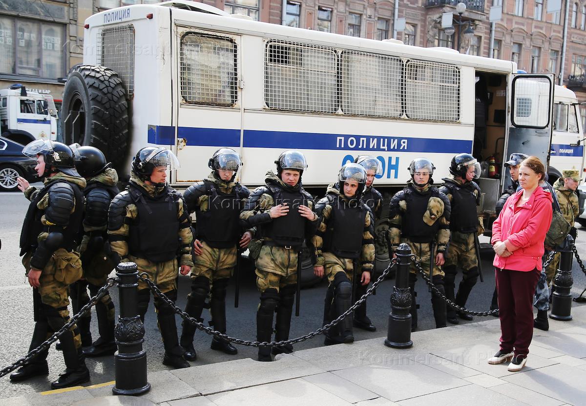 Демонстрация, посвященная Дню Международной солидарности трудящихся. Сотрудники полиции во время…