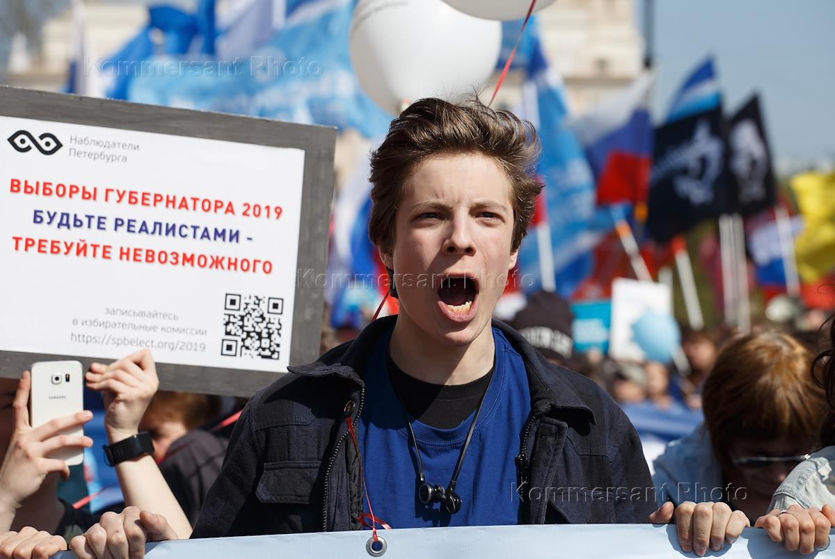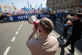 День Международной солидарности трудящихся. Первомайская демонстрация в Санкт-Петербурге.