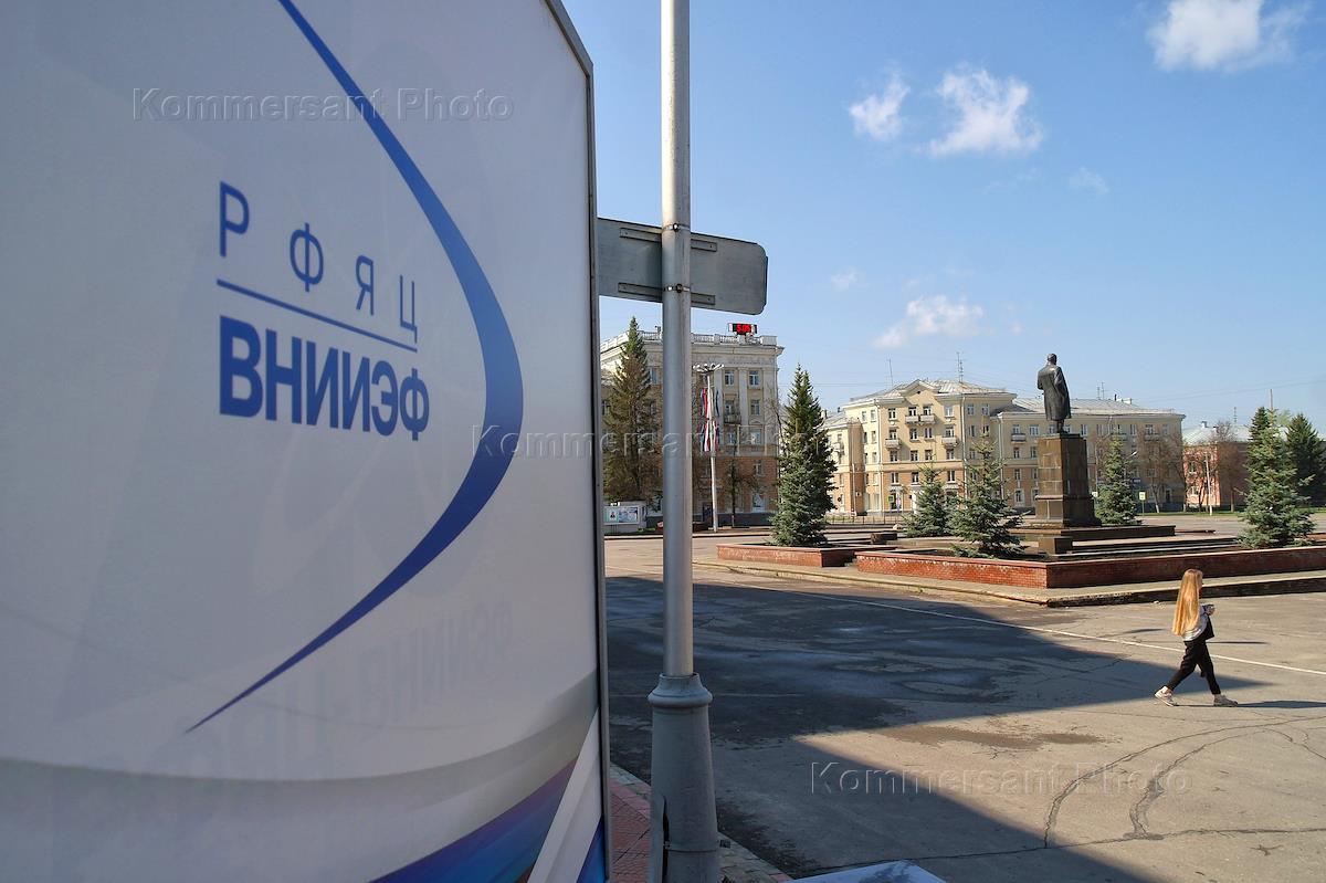Баннер с символикой ядерного центра (РФЯЦ-ВНИИЭФ) на центральной площади Сарова.