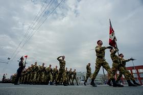 Репетиция парада Победы на площади имени Ленина в Новосибирске.