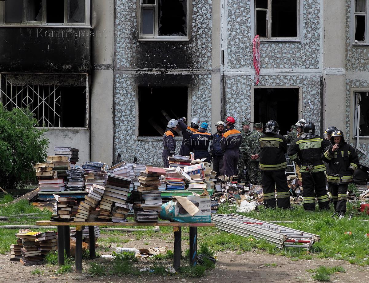 Сотрудники МЧС России во время проверки здания, пострадавшего от взрыва газо-воздушной смеси,…