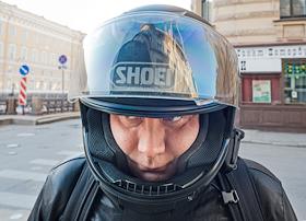 Жанровая фотография. Мотоциклист в шлеме.