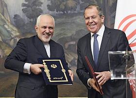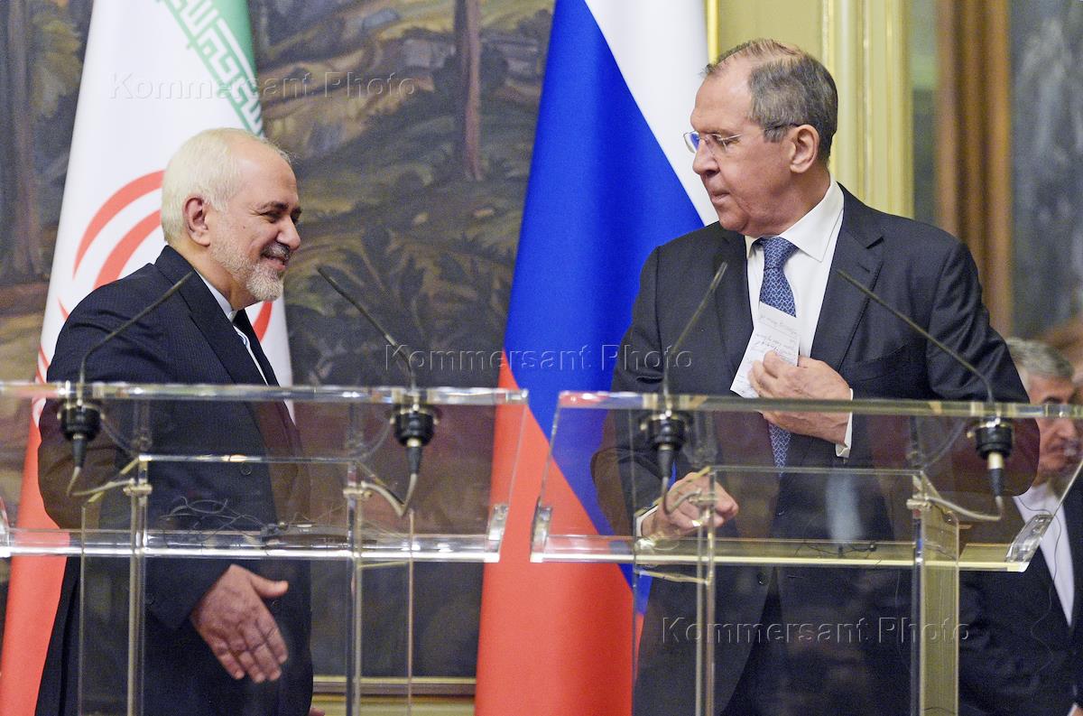 Министр иностранных дел России Сергей Лавров (справа) и министр иностранных дел Ирана Мохаммад…