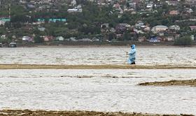 Снижение уровня воды в Куйбышевском водохранилище у Казани.