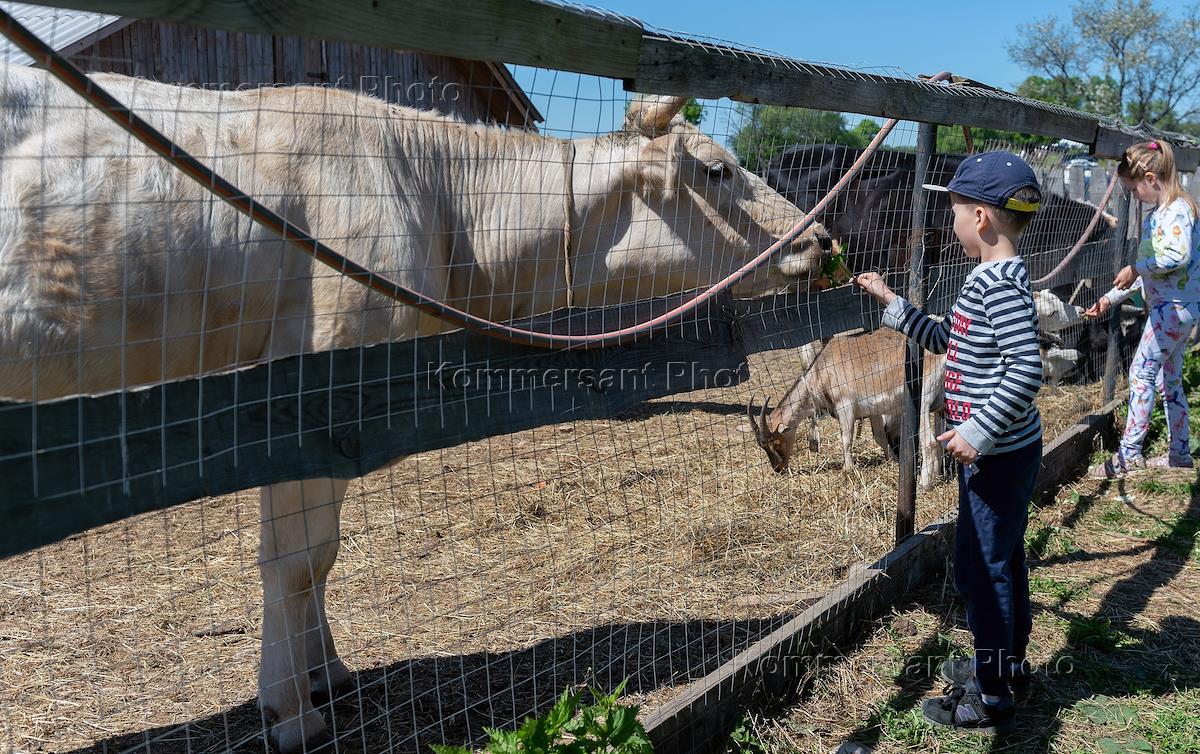 Крестьянская ярмарка в Слободе предпринимателя Германа Стерлигова. Ребенок у вольера с коровой.