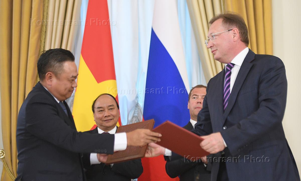 Председатель правительства России Дмитрий Медведев (справа) и премьер-министр Вьетнама Нгуен Суан…