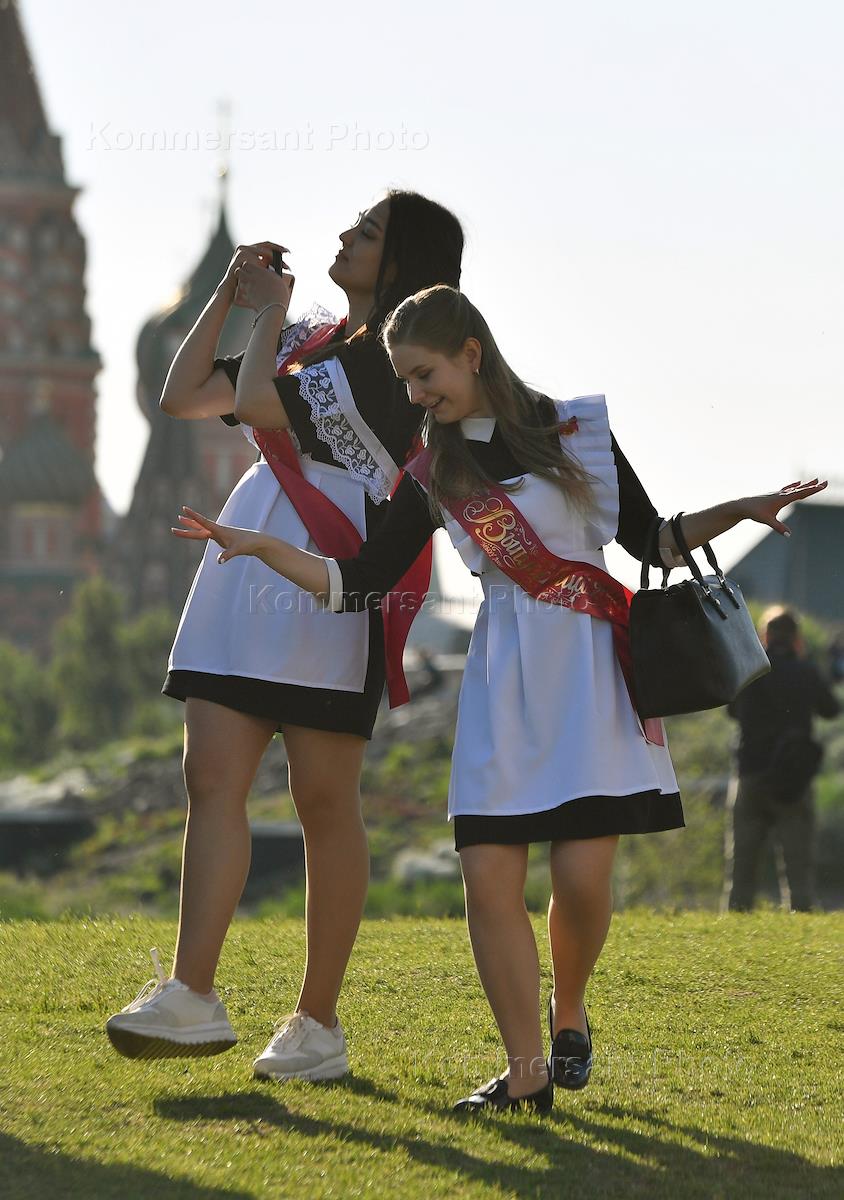 Гуляния выпускников школ, празднующих "Последний звонок", прошли в парке "Зарядье".