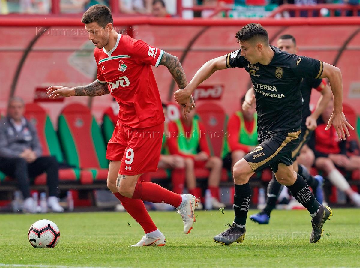 Спорт Российская Премьер-лига (РПЛ). Чемпионат России по футболу 2018/2019. 30-й тур. Матч между командами "Локомотив" (Москва) и "Уфа" (Уфа) на стадионе "РЖД Арена".