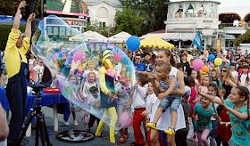 Всекрымский парад близнецов "Двойное счастье". Участники парада на шоу мыльных пузырей.