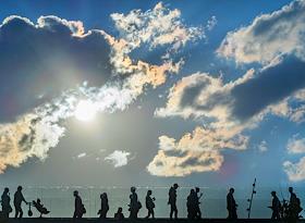 Жанровая фотография. Силуэты посетителей парка "Зарядье на "Парящем мосту".