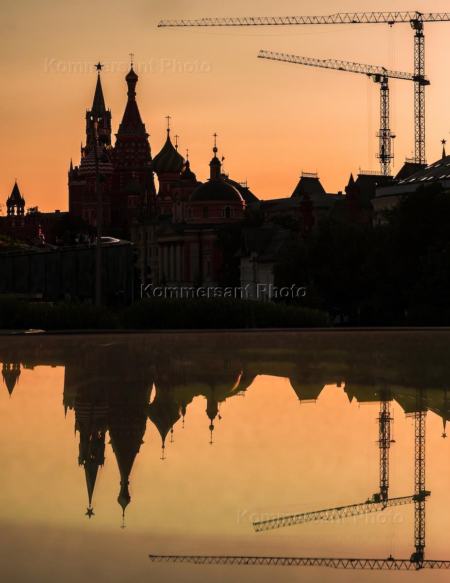 Жанровая фотография. Силуэты церквей и подъемные краны рядом с парком "Зарядье".