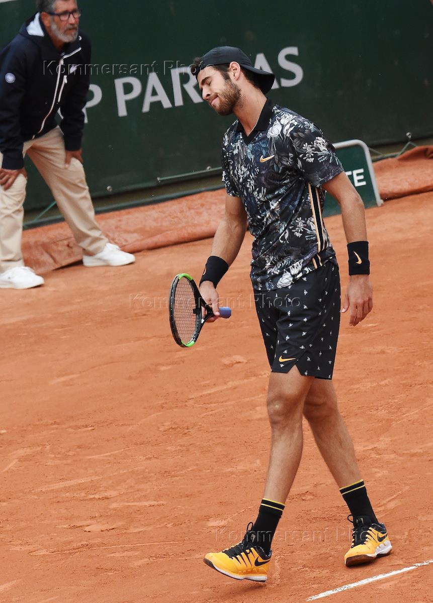 Открытый чемпионат Франции по теннису "Roland Garros 2019". Российский теннисист Карен Хачанов во…