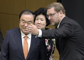 Пленарное заседание Совета Федерации (СФ) России. Председатель Национального собрания Южной Кореи…