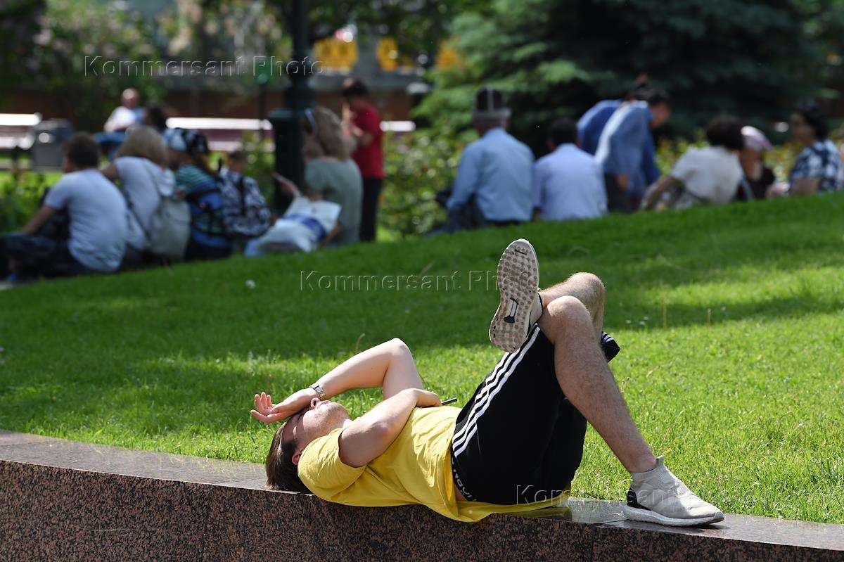 Жанровая фотография. Жара в Москве. Отдыхающие в Александровском саду.