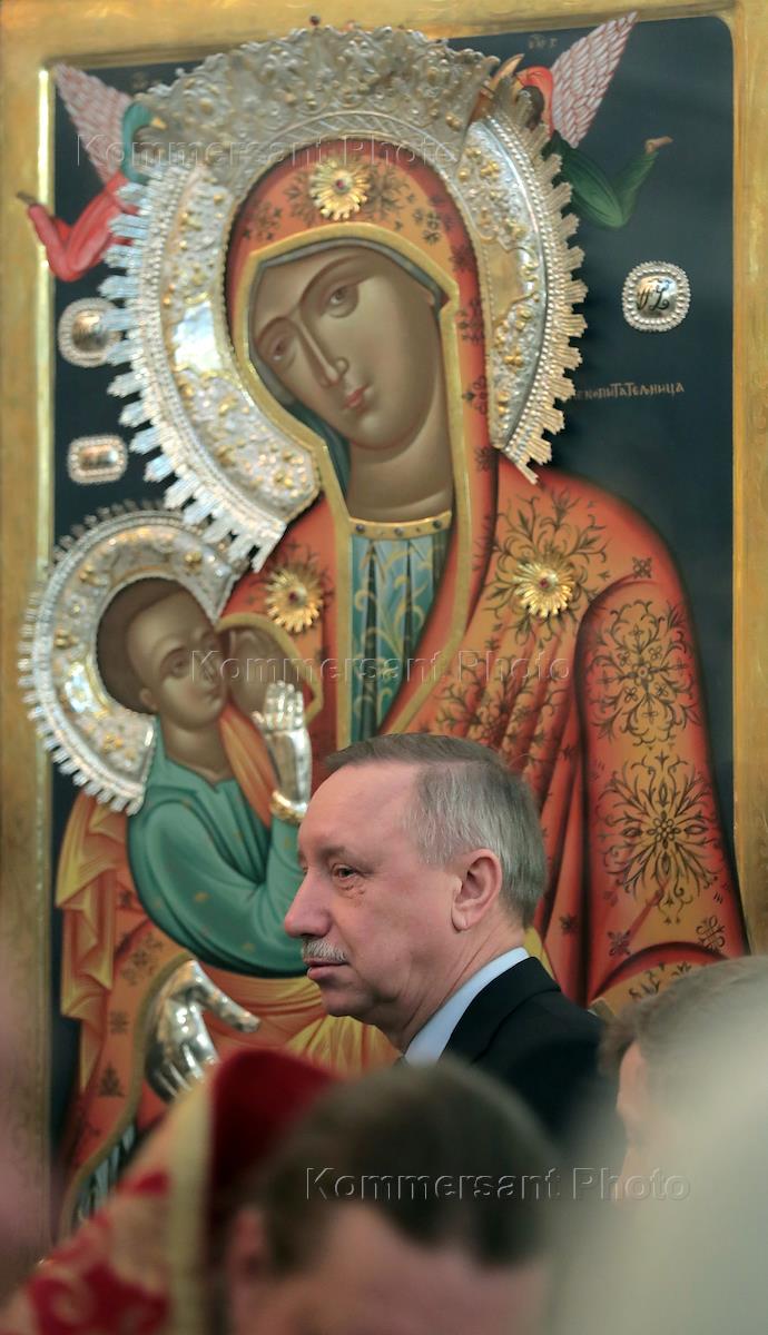 Временно исполняющий обязанности губернатора Санкт-Петербурга Александр Беглов во время освящения Новодевичьего монастыря