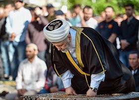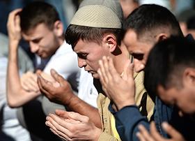 Мусульманский праздник Ураза-Байрам. Верующие во время торжественного намаза в Исторической мечети.