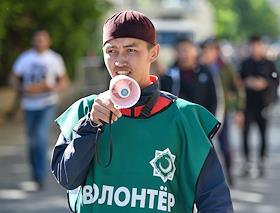 Мусульманский праздник Ураза-Байрам. Волонтер возле Исторической мечети.