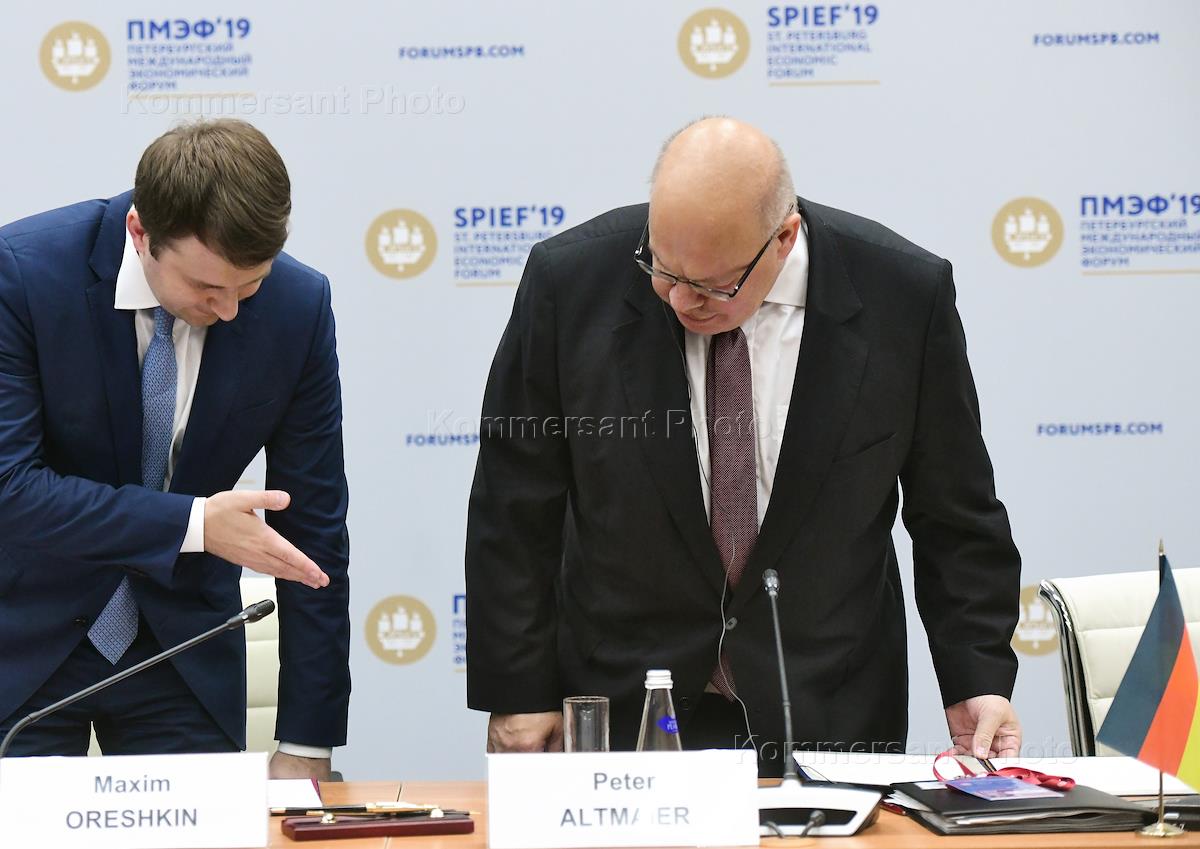 ХХIII Петербургский международный экономический форум (ПМЭФ). День второй. Справа налево:…