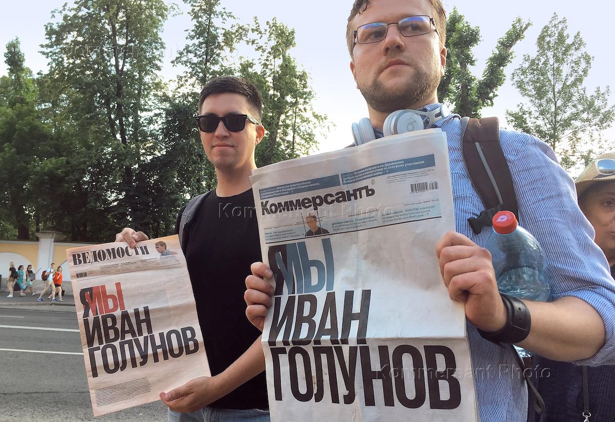Одиночные пикеты против задержания корреспондента интернет-издания "Медуза" Ивана Голунова у здания…