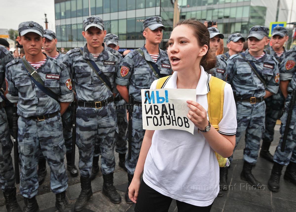 Общество Марш в поддержку журналиста "Медузы" Ивана Голунова, против которого возбудили уголовное дело о сбыте наркотиков. Участники акции и сотрудники полиции на Чистых прудах.