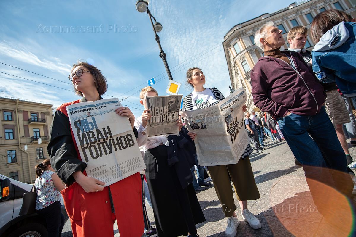 Фотографии акции петербургских журналистов в поддержку Ивана Голунова.