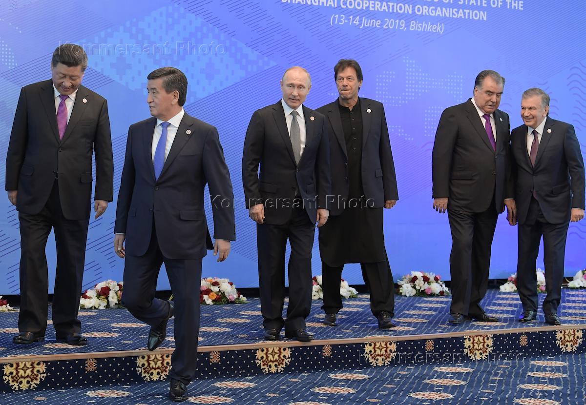 Рабочая поездка президента России Владимира Путина в Бишкек. Слева направо: Премьер-министр Индии…
