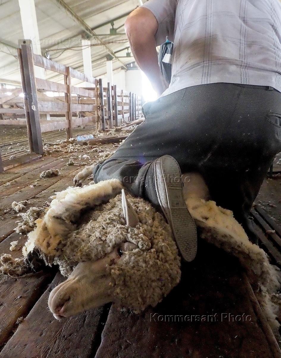 Стрижка овец породы "джалгинский меринос" в СПХ "Племколхоз вторая пятилетка" в селе Большая Джалга Ставропольского края.