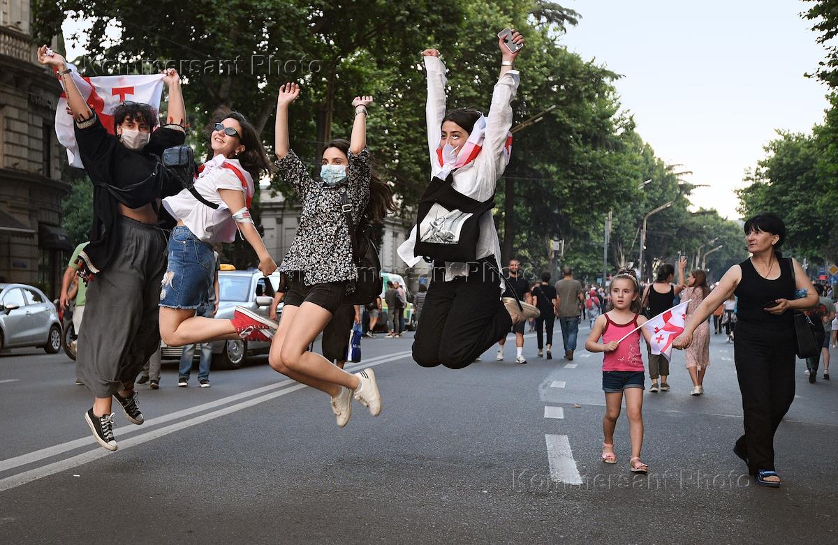 Политическая обстановка в Грузии. Участники акции протеста у здания парламента Грузии. Оппозиция в…