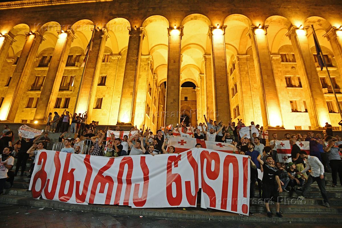 Политическая обстановка в Грузии. Участники акции протеста у здания парламента на проспекте…