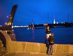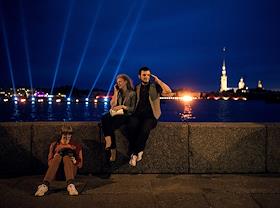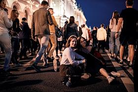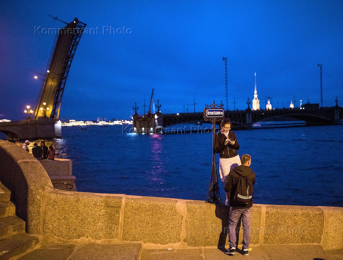 Праздник выпускников "Алые паруса". Молодые люди на Дворцовой набережной.