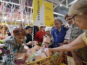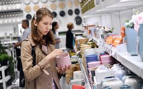 Церемония открытия нового магазина ИКЕА (IKEA) в Торговом центре "Авиапарк". Покупатели в магазине.
