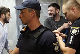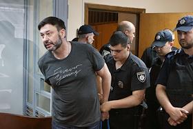 Руководитель портала "РИА Новости Украина" Кирилл Вышинский (в центре) после заседания Подольского…