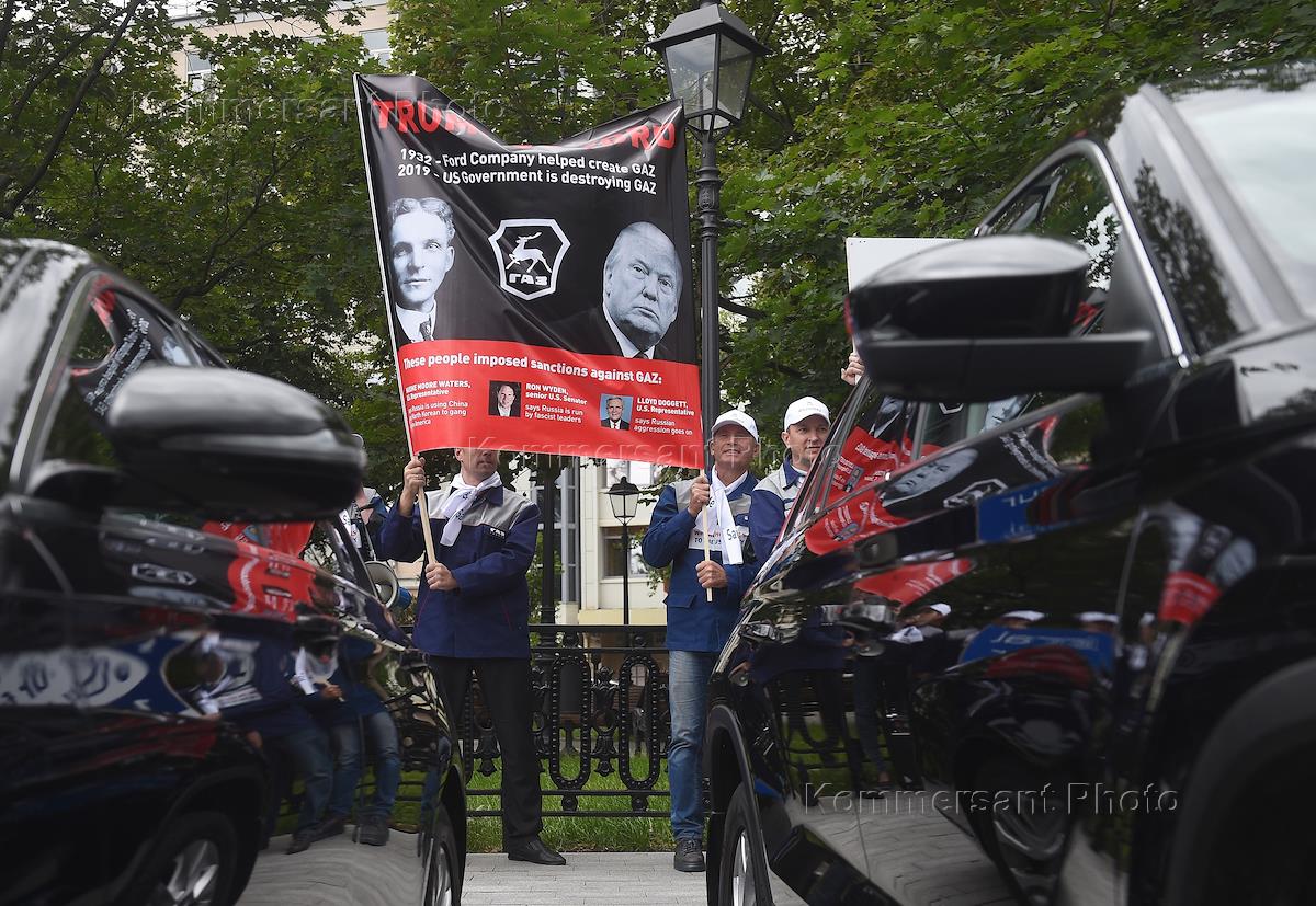 Митинг протеста работников автоконцерна ГАЗ с требованием отмены санкций против компании напротив резиденции посла США в Москве.