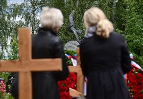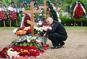 Похороны моряков подводников, погибших на глубоководном аппарате в Баренцевом море, на Серафимовском кладбище.
