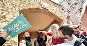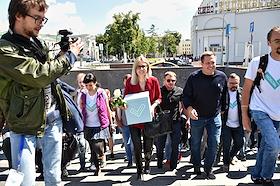 Прогулка с независимым кандидатом в Мосгордуму Любовью Соболь с целью подачи в Мосгоризбирком собранных подписей.