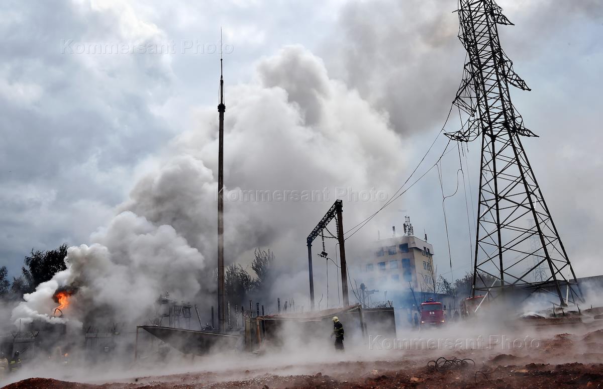 Сотрудники МЧС России во время ликвидации пожара возле Северной ТЭЦ.