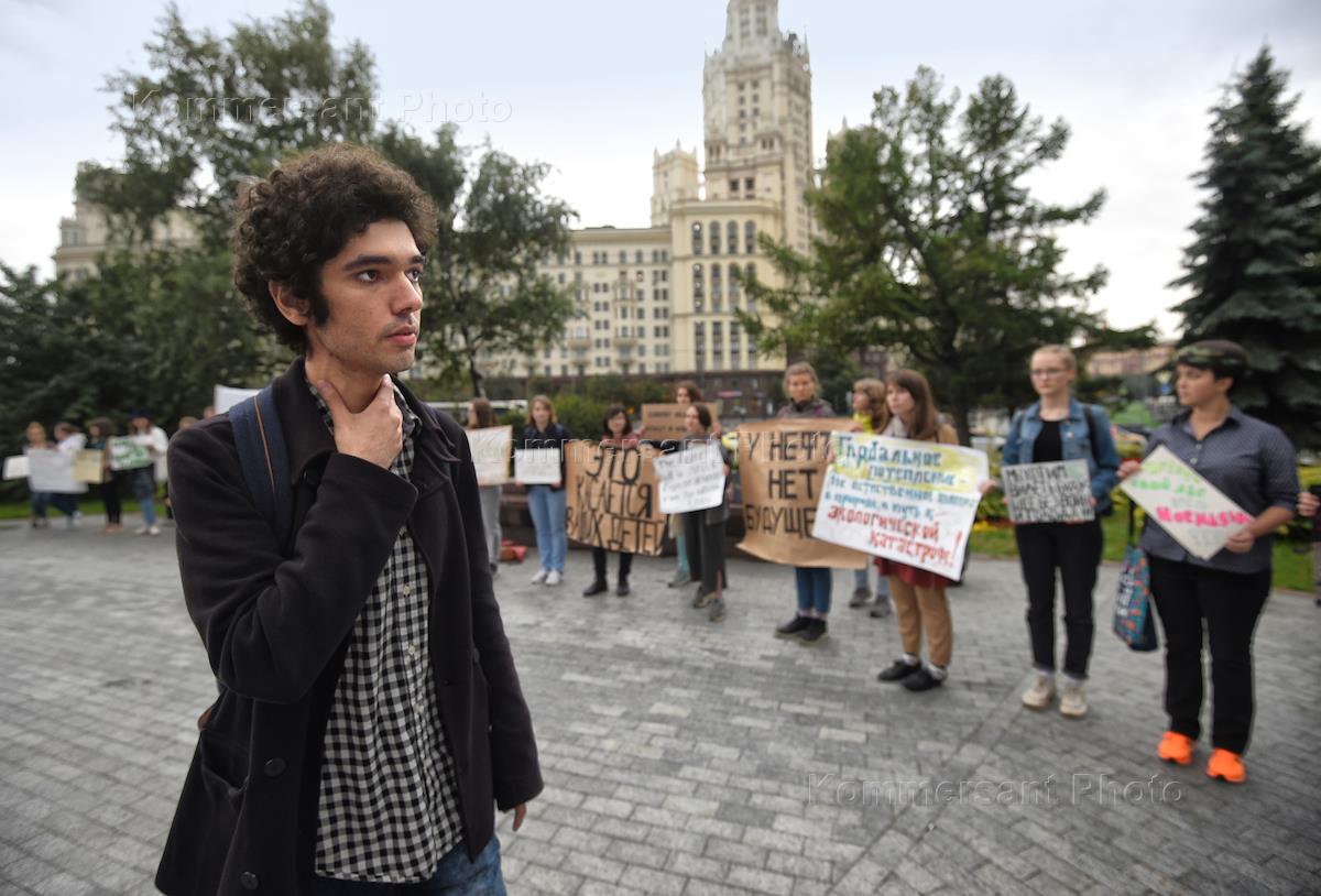 Участник пикета активистов климатического движения Fridays For Future на площади Яузские ворота.