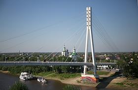 Виды Тюмени. Вантовый пешеходный мост ("Мост Влюбленных") через реку Тура в Центральном округе…