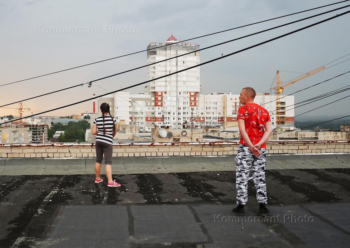 Один день из жизни девочки России Перминовой. Россия Перминова с отцом на крыше своего дома.