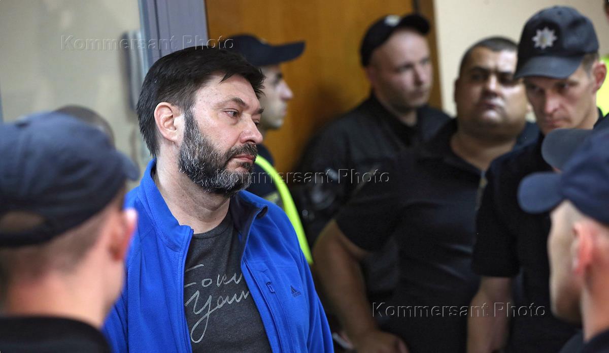 Руководитель портала "РИА Новости Украина" Кирилл Вышинский (второй слева) и его адвокат Андрей…