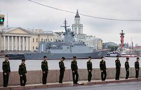 Жанровая фотография. Военнослужащие стоят в оцеплении на набережной.