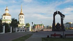 Виды Ханты-Мансийска. Покровская церковь и памятник основателям города.