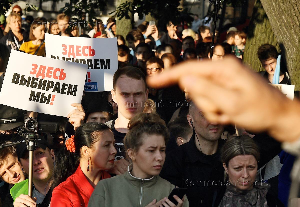 Митинг на площади Ленина против произвола на выборах в Петербурге