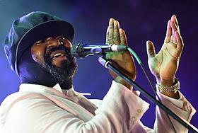 Ежегодный фестиваль джаза и шахмат Chess & Jazz в саду "Эрмитаж". Американский музыкант Грегори Портера во время выступления на фестивале.