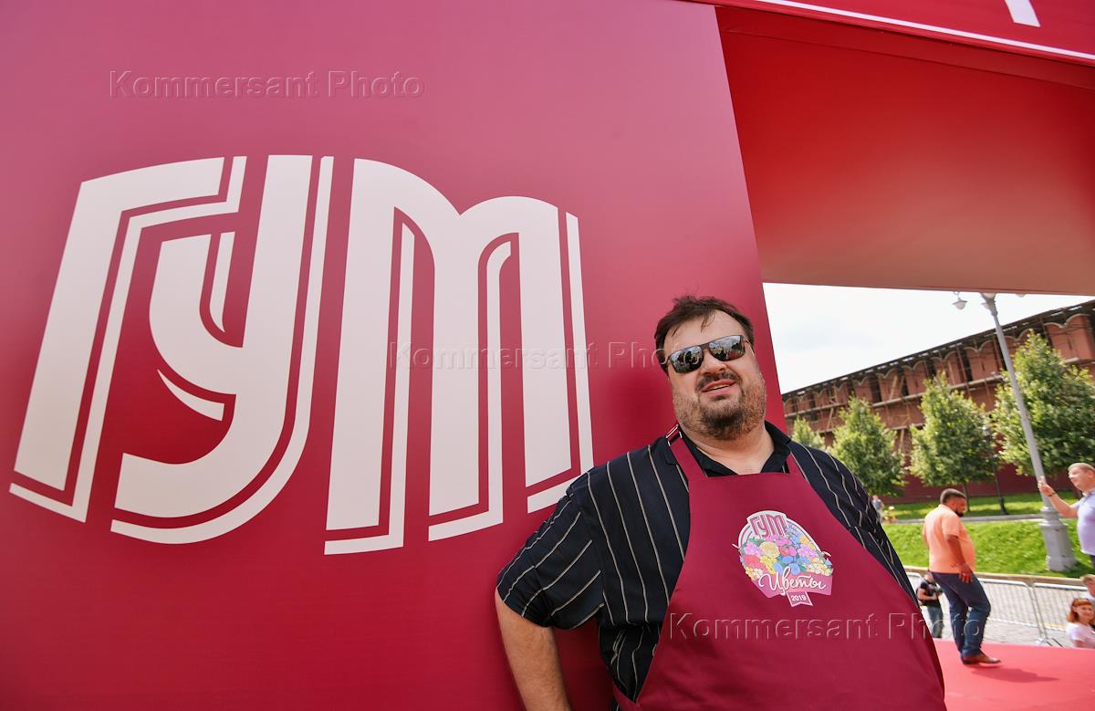 Ежегодная гонка ретроавтомобилей "ГУМ-авторалли". Спортивный комментатор Василий Уткин перед началом…