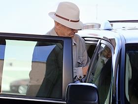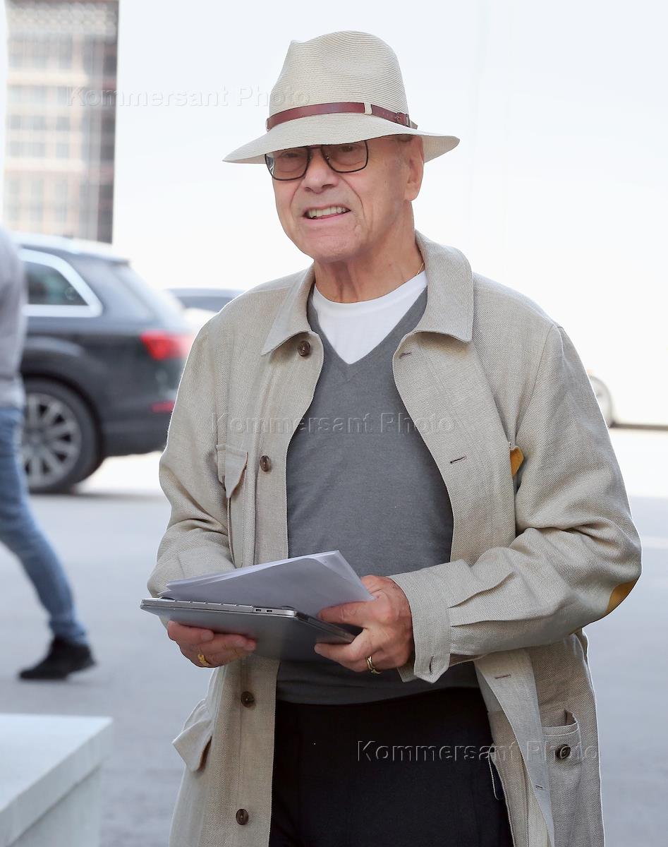 Режиссер Андрей Кончаловский после окончания пресс-конференции, посвященной теме "создание памятных…