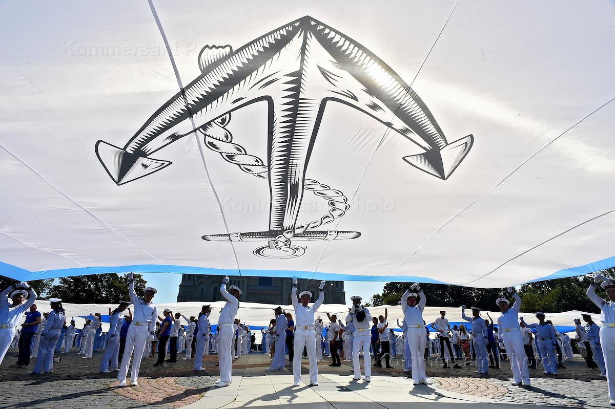 Армия и ВПК Празднование Дня Военно-морского флота (ВМФ) России в Санкт-Петербурге. В Кронштадте установили рекорд России в преддверии Дня Военно-морского флота развернув на Якорной площади самый большой в мире Андреевский флаг длиной 65 метров, шириной 43 метра и весом 300 кг.